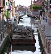 When Venetians get the builders in, they arrive on a huge steel barge that forms a floating building site, and just like builders everywhere, block the road for weeks on end.