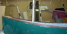 Original mast step placement (shown during overhaul with original mast partner removed and new gunwale rails in progress)