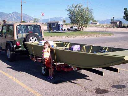 I purchased Jim Michalaks book from you around January. I started building Jonsboat in February and just got her finished the end of June. I haven’t put a motor on it yet but installed oarlocks and have taken it out twice. It handles like a dream. The oars I am using are a bit short, they came with my inflatable pontoon boat, yet I can row this boat faster and more accurately with 600 pounds of people and gear than I can my little inflatable. I attached a picture for you, my little girl loves it!