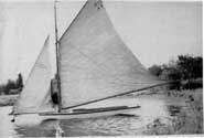 I have attached a copy of a newspaper clipping of my father Ed winning a race in 1933 and a picture of Maurice's punt the "After U." The picture shows a type of boat locally called a " sailing punt" common to the area having sailed on the Bay of Quinte for over a hundred years. The clipping shows the crew member hiking out on the hiking board (read plank) to keep the boat upright. On windy days the larger the person the better were his chances of crewing that day. If you look closely you can make out the oar that was used to steer the boat, everything about the boats was simple and cheap. The definition of a punt is a flat bottom boat with square ends and this description certainly fits the Quinte sailing punts. The boats raced in several classes but all boats were made by the owners, sails were obtained from various sources for example, some were re-cut from old schooner sails, made from canvas remnants from various sources.