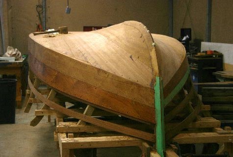 Rich Wilmore's class, in the Large shop,  has the bottom planked (and long-boarded) and several of the mahogany side planks on the 1934 Monk runabout.