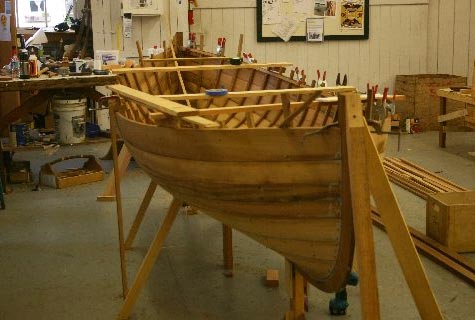 Over in the Small Craft Shop, Tim Lee's class has the first of two Davis boats off the molds. This one is a trim 14-footer. The molds have been set up again for a 16-foot Davis Boat. Davis boats were originally built in Metlakatla AK beginning in 1905.