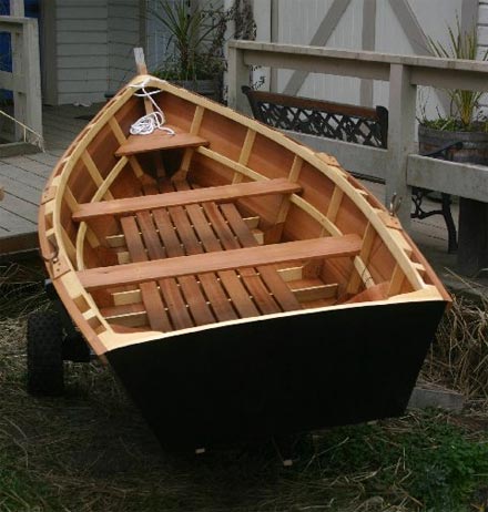 The 12-foot Grandy dinghy (foreground) and the 9-foot Grandy dinghy are being planked with western red cedar.