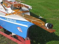 Where I failed, Eric Larson succeeded. He came up with a pretty good el-cheapo switch box. This is a small discount store utility box and common household light switches. He even stuck in a little accessory fuse block. Here it is removed while I was remodeling the hull.