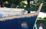 I think designer Jim Michalak originally drew this boat to have a nearly full length slot top, and for good reason. Jim is entirely right when he comments on the convenience of being able to easily walk forward and over the bow to dry land. Eric for some reason preferred a smaller opening, and left about 20” of deck in front of the slot before the bulkhead. This makes docking by the bow rather clumsy, and some degree of athleticism is needed to scramble to the beach. I think I remember Eric being taller than me, so that might be part of it.