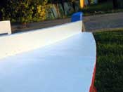 I’m quite sure Jim will disapprove of this mod, since it adds weight for pure vanity. Hopefully I made up for it by removing weight aft, where the weight of crew and motor generally is. On the positive side, however, bow boarding is improved.
