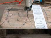 Transfer the lines to the hull by tapping a finish nail through the paper every half inch or so. Then cut along the line with a jigsaw.