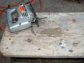 Tom Hamernik and I were discussing the problem and he mentioned the idea of mounting the saw’s base to a piece of scrap plywood and making a jigsaw table. This would work with a normal upward-cutting blade. I thought it was a lot easier to get a non-standard blade, but if your hardware store doesn’t carry them, you do have options. Safety warnings should be thoroughly obvious here unless you want your Julius Caesar audition to be extra convincing.