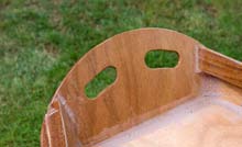 The gunwale is a traditional ladder type with spacer blocks separating the inwale and outwale, which provides stiffness to the sheerline of the boat to handle the stress of hard rowing and rough water. The gunwale also provides necessary support when rolling the boat over for storage. The inwale and outwale are mahogany to match the plywood face veneer and for lightweight versions spruce or fir can be used to save weight. Light weight allows a larger payload, but the real advantage comes in getting the boat on and off the water. To make launch and retrieval even easier, with the slick graphite bottom the boat can be dragged over parking lots, launch ramps and gravel beaches preventing having to be lifted or trailered into the water.