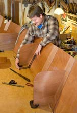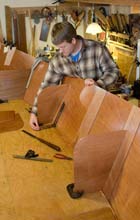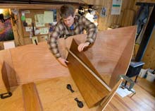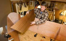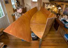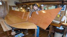 This technique works best using hardwood ply—mahogany, okoume—but getting good hardwood ply can be a problem in many parts of the country. Shipping can add to the cost, but hardwood ply works best with epoxy and unlike domestic softwood ply does not have to be sheathed with glass cloth. Hardwood ply also has very appealing face veneers, which is why so many of these boats are finished natural, and is also available in metric thicknesses allowing the builder to easily engineer the boat to suit usage. All lumberyards can special-order hardwood ply, but are often reluctant to deal with the hassle of small quantity orders. For consistent quality hardwood ply and small quantity shipping we have been pleased with Edensaw Woods, edensaw.com (800) 745-3336. Plywood is the heart of the boat and you usually get pretty much what you pay for with plywood.
