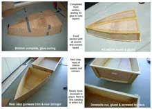 The construction method is a little unorthodox, however, and may require that the builder experiment with the 'Tape & Glue' process prior to actually starting construction. This is similar to the stitch and glue method used by other boatbuilders, but without the stitches or epoxy. Weather conditions, heat and humidity, will affect the process application and curing times. Other than that, everything is very straightforward, and a strong, lightweight boat is the end result. Construction options include gussets, additional decking and fiberglassing of the bottom, for use in harsher environments.