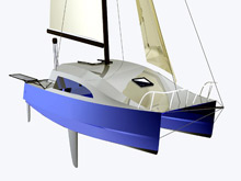 The 8'6" beam version is trailer legal in the US and Canada and the boat can be towed by a mid-sized car or truck rated for the weight. Dry weight of the boat, ready to sail, should come in at just about 950 lbs. with a trailer weight of about 250 pounds. On road trips, the boat itself can serve as a motel for overnight stays on longer drives.