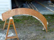 The next day I snipped off the copper wire on the outside, sanded the stubs until the surface was smooth, and glassed the whole stem. The resulting structure seemed very strong and was satisfyingly light. But since the stitch-and-glue stem has no rabbets to receive the ends of the longitudinals, I had to come up with a different way to attach gunwales and chine logs. |