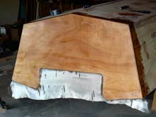 Once the epoxy had set up, I had to shape the keelson to accept the bottom panels. To get the proper angle I just laid a stick between the chine and keelson, then removed material with 50-grit paper on my antique Craftsman belt sander until the stick would lie flat. The last time I did this I used a power planer; the sander IMHO is much more easily controllable.