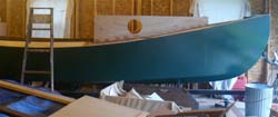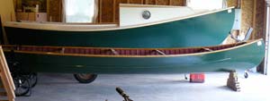 But first a photo op. I mentioned way back in the first installment that one of my inspirations for this design was the most famous indigenous boat of our region, the Grand Laker canoe. In the fourth installment I noted that the choice of a round stem was made in homage to that beautiful craft. Well, here’s what the Lake Skiff looks like next to a real Grand Laker. I hope you see the family resemblance. |