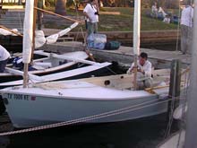 The next morning folks left early. There were at least three possible routes and more attention would need to be paid to navigating than on the previous two days. Here Tim Rinkevich readies his Core Sound 17. His sailing partner was Pete Brigatis.