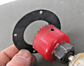 | Before the layers can be mounted, you need to drill a hole. Since it fit the inner opening, I used a 1 ½” hole saw. |