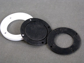 The tricky part is getting everything lined up. My suggestion is to mount the inner gasket and the white plastic part, leaving off the flapper. You can see to get the gasket lined up with the hole you drilled—just set the screws at 45 degrees (10:30 and 1:30?) so the flap will be upright. You might rotate it a bit so the flap will tend to be pushed shut by passing (from the front) current. After you have set at least two screws, back them out and insert the flap layer in-between.