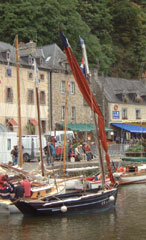 Every year a motley collection of boats and their enthusiastic crews take part in a 'raid' style gathering called the 'Route de Cidre' - a semi-formal race and regatta. We caught up with them at the little town of Dinan, near the limits of navigation on the River Rance. Dinan itself is charming walled town.