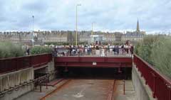 The 'bridge' leading to the walled city of St Malo at the mouth of the River Rance. |