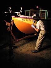 The registration numbers were painted on the bow the night before launch, and we cleaned up the drips from overnight dew the next morning. |