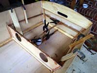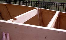 Cut and install framing for fore and aft decking, including center supports and gussets. Mark slot for centerboard on bottom. Time: 5 hours.