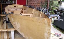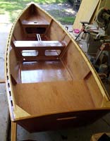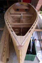 The finished gunwales are very elegant. Note also the framing for the midships seat has been installed as well as the breasthook. |