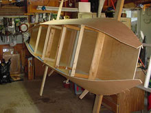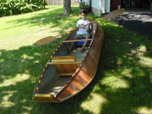 I started Tlingit (name of the Alaskan native tribe my grandmother came from in 1898) one week after I read the article. It was finished the first week of August. I used a 12' ladder for a strongback and used PL Premium Concrete and Crack filler for the inside seams and epoxy glass tape for the outside seams. I shortened her to 12' and made moveable low seats with backrest for comfort.