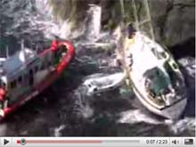 "The Coast Guard assisted four people on a sailing vessel that ran aground at the south end of Lopez Island, Wash." |