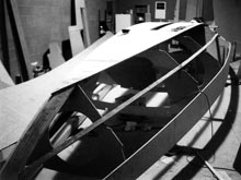 The original cabin and keel, long and lean. Not much underwater to slow her down. |