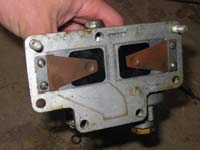 - We could cast a new aluminum part with the reed plate and a flange appropriate to the newer carb. This is probably the best way, but I doubt most of us would go to the trouble. (Besides, I feel a little self-conscious putting my castings next to the artwork OMC put in their motors.)