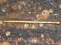 A simple old carb can certainly teach a lot about how motors work, can’t it? Alas, it failed the all-important test on the water. The old needle and seat of the float’s valve were too worn to fully shut off the fuel even when the float rose properly. This became really obvious as I lifted the fuel supply, increasing the pressure—fuel ran out the top of the float bowl unchecked. Here’s what the valve looks like after I cleaned it up with crocus cloth.