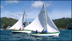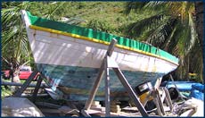 Above left, two Tortola sloops in a 2004 “Tola Boat” Shootout, and above right, the Grand Dame of the British Virgin Islands, the sloop Vigilant which is over a hundred years old, now on the hard and in desparate need of repair. Once a stalwart workhorse of the Caribbean area, it is felt that she can still be saved if funds can be raised.