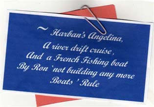 If that model in the top left photograph is two feet eight inches long then I am the new President of the United States! Mystery man Harban (remember that story?) finally sent me a photograph of (he says) one of his 28” long free-sailing models. Well, I’ve kinda worked out in the pea- sized topside unit that is my brain (and I did it all by myself mind you!) that Harban (if indeed that is his name?) is having me on, for the model of Angelina (shown) that he sent (no letter with it – the envelope posted in Portugal!) I believe is one of those tourist miniatures, albeit it beautifully carved in light wood and about two and a half inches long sold in fishing areas of Britain (I saw them in Cornwall.) You can judge for yourselves and I think only a picture of someone holding it would convince me otherwise. Sorry Harban but I tend not to believe thee. just a tad mind you! I really hope I am not misjudging him but let me just say, the jury is still out!