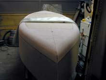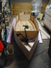 | The the hull was turned back over and the 4" thick pink styrofoam added a bit oversized. |