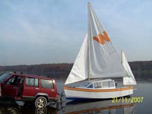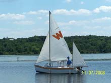 Many Ducker’s responded to my design, build & launch articles two years ago, often with helpful advice. At the time several folks asked for a “full performance report”. I never got around to it … too busy sailing. But now it’s New Years 09’ and cold and blustery here in Philadelphia. Over two seasons I’ve had a couple dozen outings under widely varied conditions. Maybe now is the time to sum it up. My Wanderer design, hull #001, the “Terry Jeanne”, is sound and able: points up well, moves smoothly with a wisp of wind and is wonderfully steady in all conditions, moves easily at hull speed under 2/3 power, carries 4 - 5 - even 6 in comfort, and provides comfortable bunks for two..