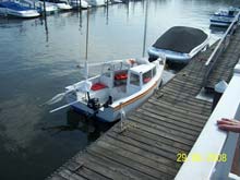 And after all the excitement, docked in the moonlight - (Look close: you can see the 4” bridge deck w/ cup holders & stowage below) |