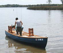 David is an avid fisherman, and I suspect that his vocation evolved from his love of the outdoors. He has taught at the WoodenBoat School in Maine and the Great Lakes Boat Building School in Cedarville, Michigan. He also brought along the much larger Big Laker, a newer design that takes an outboard and loves to chase fish. |