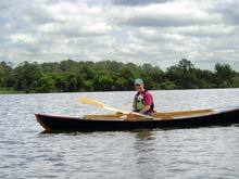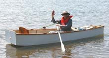 Duckworks very own Chuck Leinweber came with a very lightweight canvas on frame kayak built from an old design he got off the ‘net. |