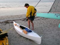 There is kind of a mystery going on with Jarhead. As you can see in the image of his track at the right (click to enlarge), He left Flamingo heading southeast toward the first Florida Bay channel - he had told Gary he was going across rather than around - but suddenly turned west as if he had changed his mind and decided to go around after all. Then, just as suddenly, he turned back toward the east, ending up, aparently, on the beach at East Cape (the darker icon represents the latest position - the icons represent spot "I'm Ok" signals. You can check his progress by going to the mapper, and selecting 'Jarhead" from the drop-down there). Did he break something and then head back only to run out of steam and stop for the night? Did he change his mind about route twice?