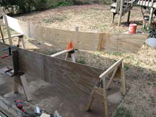 But such heady progress was not to last as mother nature had her way and I lost 5 or more weekends and numerous days to rain. In hindsight, a $200 or $300 instant garage/shelter would have been very worthwhile. Sean was able to come home from college a couple of times and help, but Paul’s new job had him traveling around Europe and the USA. So this was essentially a 95% solo build.