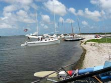 Camp 2 was supposed to be a dredged future expansion area next to the Padre Island Yacht Club in Corpus Christi. But upon arrival, the Vice Commodore was waving all boats to slips on the docks right in front of the Club House. What a great group of people; showers, hot water, air-conditioning, Bar-BQ pits, and those slips at our disposal. Also, free rides to shopping areas where one could re-stock with ice, beer, food items as needed, beer, long sleeve shirts and long pants, beer, plastic cups to replace those coffee mugs left at home, and alcohol replenishment! We never drank while we sailed, but we did not sail all day…