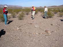 On top of the bluff we were treated to one of several medicine circles in the region. They are supposed to be authentic and I find it hard to imagine that anyone would go to the trouble to come way out here to perpetrate a hoax. Donna Grimes, John Rich and Dana (L-R) examine the artifact. |