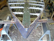 After stripping all the old paint we begin with a breast hook and intermediate beam per drawing.