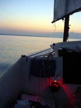 Part of the reason for going to a small 12-volt battery was to have the convenience of throwing a switch and having the running lights come on, which saved the discomfort of leaning out from the cabin over the foredeck to attach the otherwise commendable Tektite LED running lights to the forward cleat. It also allowed for such niceties as a cabin fan and some interior lights, plus a night light for the compass.