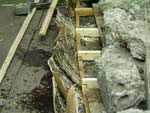 John cutting gores in the bark. Note the rocks on the frame on top of the bark. |