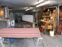 Moved things around in shop. Drug the form into place on sawhorses and generally took an inventory of what’s needed. Form is in pretty good shape, keelson piece is loose (unglued) in front half of form. Clear packing tape on forms is pretty ratty and needs to be replaced.