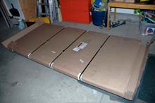 The beginning - Nine sheets of BS1088 Meranti Marine plywood as delivered from Noah's Marine in Ontario.