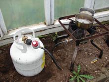 I borrowed a burner used for cooking lobsters, an old pot and I was in the forging business. With all safety precautions in place such as welding gloves, vapour filter mask, goggles etc, I proceeded to melt 50 lbs of lead. |