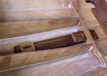Though the Seil-18 is basically a jibless boat, François was prepared to draw an additional sail plan with a 35 sqft jib for extra handling possibilities. This required a second mast step further aft (the main shifts about 22 inch aft), bottom reinforcements, and additional eyelets for various pulleys and stays. If you plan to build a Seil with a jib, you could even extend the lower centreboard battens through station #9 to accomodate both mast steps.